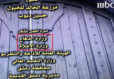 وورد في شارة نهاية مسلسل "باب الحارة" ما نصّه: "أسرة العمل تشكر: وزارة الدفاع، وزارة الإعلام، الهيئة العامة للإذاعة والتلفزيون، وزارة التعليم العالي، محافظة دمشق، مديرية دمشق القديمة".