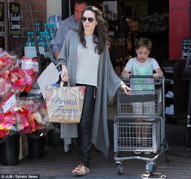 نشرت صحيفة دايلي ميل صوراً للنجمة العالمية انجلينا جولي وابنها نوكس ذات السبع سنوات وهما يتسوقان في شوارع لوس انجلوس يوم الخميس.