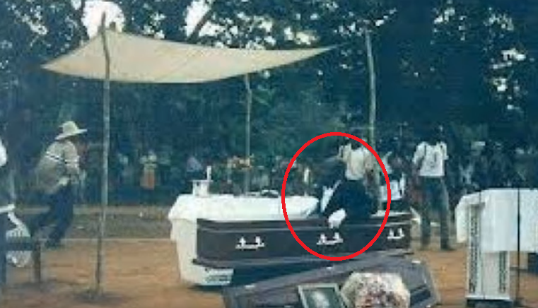 2.رجل ينهض اثناء جنازته: توفي رجل في زيمبابوي بعد صراعٍ مع المرض، وأثناء تشييع جثمانه في مايو 2013، شاهد أحدُ المشيعين الجثة تتحرك فأخرجوه على الفور من التابوت.