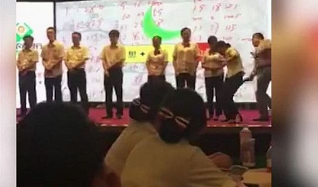 انتشر مقطع فيديو على مواقع التواصل الاجتماعي يظهر فيه موظفو بنك صينيون يعاقبون على سوء أدائهم بطريقة غريبة وغير مألوفة.
