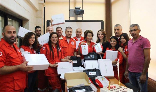 سلم الصليب الأحمر اللبناني، من جمعية "رودز فور لايف" هبة هي عبارة عن 24 صاعقا كهربائيا لإنعاش القلب، مخصصة فقط للتدريب ومقدمة من السيدة هالة صالحة.