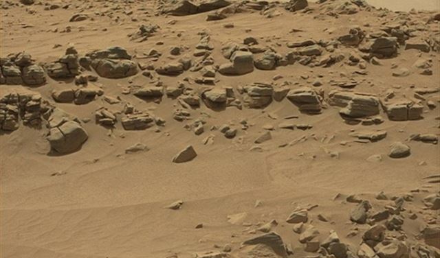لاحظ مراقبون من خلال إحدى الصور الملتقطة بمركبة "كيريوستي" الأمريكية لاستكشاف كوكب المريخ وجود مخلوق غريب الشكل بحجم صغير يختبئ خلف إحدى الصخور.