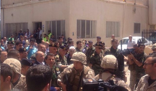 تفقد قائد الجيش العماد جان قهوجي مكان التفجيرات في بلدة القاع البقاعية وغادر دون الإدلاء بأي تصريح.