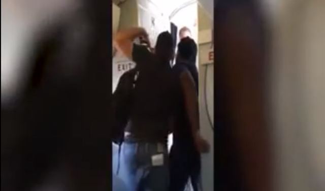 ويظهر قائد الطائرة وهو يمسك بالراكب ويثبته على الأرض في محاولة منه لتهدئته والسيطرة عليه بينما كان الراكب يهدد الطيار ويقول له بأنه سيندم على فعلته هذه.