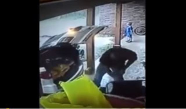 ورصدت كاميرا مراقبة مثبتة أمام المنزل الحادثة المريعة، حيث شوهد الطفلان وهما يقفان أمام منزلهما بينما كان الأب يفرغ الأغراض من السيارة.