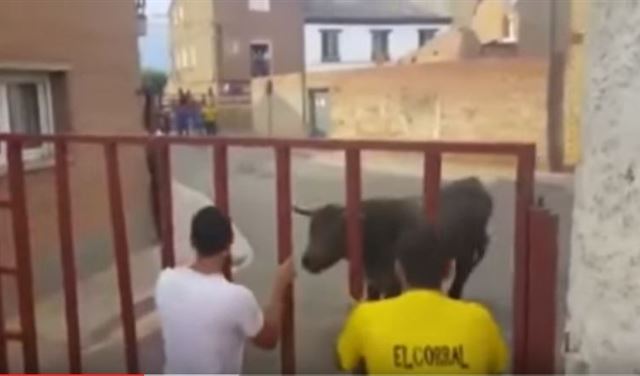 وتظهر اللقطات المصورة سكان بلدة ألفامين بالقرب من مدينة سرقسطة وهم يهربون أمام ثور هائج، حيث اعتلى العديد منهم أسطح السيارات واختبأت طفلة في السابعة تحت إحدى السيارات بعد أن تعرضت لهجوم الثور مرتين متتاليتين.