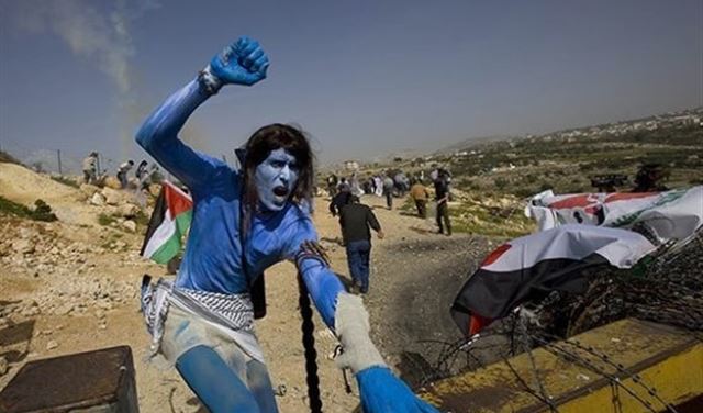 قام متظاهرون فلسطينيون بارتداء ثياب زرقاء وطلاء وجههم بالأزرق، كما حولوا أنفسهم إلى ما يشبه الكائنات الموجودة في فيلم آفاتار، وذلك احتجاجاً على جدار الفصل الذي قامت إسرائيل بتشييده. قارن المشاركون أنفسهم بشخصيات الفيلم، الذين طردوا من وطنهم.