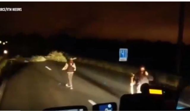 أظهر تسجيل مصور صادم نشر على موقع يوتيوب الإلكتروني لحظة قيام مجموعة من اللاجئين بمحاولة السيطرة على شاحنة على أحد الطرقات السريعة في بريطانيا والصعود على متنها لعبور القنال الإنكليزي بمساعدة رجال مسلحين.