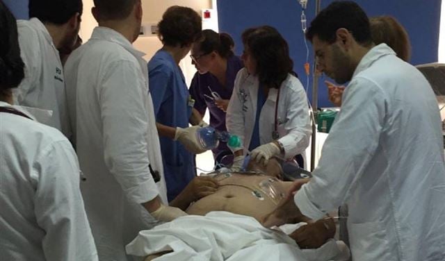 «بدنا نطلّعو يا شباب على غرفة التمييل لأنو عامل Infarctus -ذبحة قلبية-». وبلمح البصر، نُقل المريض محاطاً بجيش من الأطباء من مختلف الإختصاصات في اتجاه غرفة الإنقاذ.
