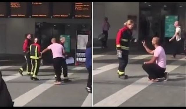 تقدم شاب بريطاني بطلب الزواج من حبيبته التي تعمل في فوج للإطفاء بمدينة برمنغهام البريطانية بعد أن اتفق مع رؤسائها في العمل على إرسالها مع زملائها لمساعدة رجل علق الخاتم في إصبعه في محطة للميترو.