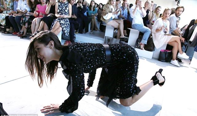 “بيلا” وقفت واكملت العرض بكل ثقة على الرغم من ان عملها كعارضة محترفة يبلغ عاماً واحداً حيث تعتبر من الوجوه الجديدة في عالم عرض الازياء.