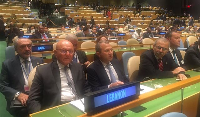 وضم الوفد وزير الخارجية والمغتربين جبران باسيل وسفير لبنان في الامم المتحدة نواف سلام.