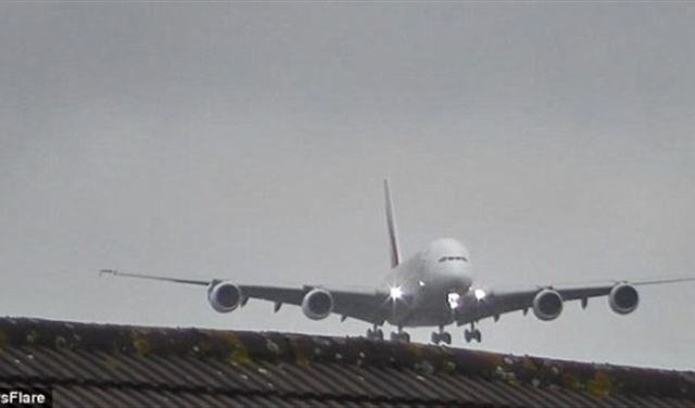 شُوهدت الطائرة بالقرب من سطح أحد المنازل وهي تطير بشكل جانبي في محاولة لتطبيق مناورة مخصصة للهبوط في هذه الأجواء.