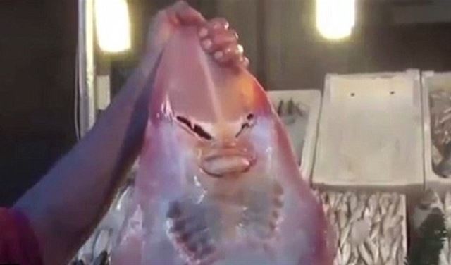 ظهرت في سوق لبيع السمك في تركيا سمكة قرش غريبة بملامح بشرية أثارت ضجة على مواقع التواصل الاجتماعي.