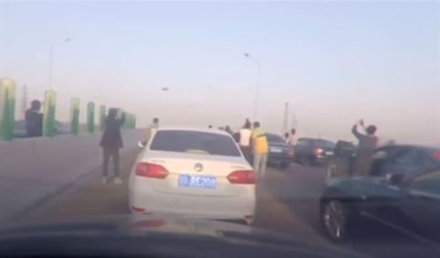 ويُسمع في الفيديو صوت امرأة تصرخ مذعورة وتقول: "فان دي آيا" باللغة الصينية وهو ما يعني جسم غامض، وفقاً لما نقلت الصحيفة البريطانية بينما ظهر حشد من السائقين يحدقون في السماء ويسجلون لقطات بهواتفهم المحمولة للظاهرة الغريبة التي وقعت في 8 أبريل (نيسان) هذا العام.