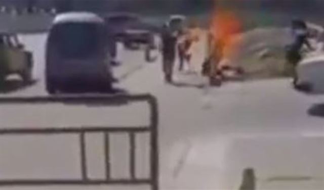 وقالت مصادر طبية إنه مازال على قيد الحياة، وإن نسبة الحروق به وصلت إلى 75%.