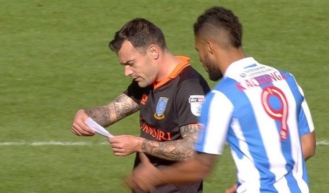بطل هذه اللقطة الطريفة هو إلياس كاتشونجا، لاعب هدرسفيلد الذى تلقى ورقة من أحد زملائه تحتوي على تعليمات من المدرب، قبيل نهاية المباراة بعدة دقائق، ليقوم والاس لاعب فريق شيفيلد بخطف الورقة من كاتشونجا وقراءة التعليمات قبل أن يعيدها إليه مجددًا في لقطة طريفة.