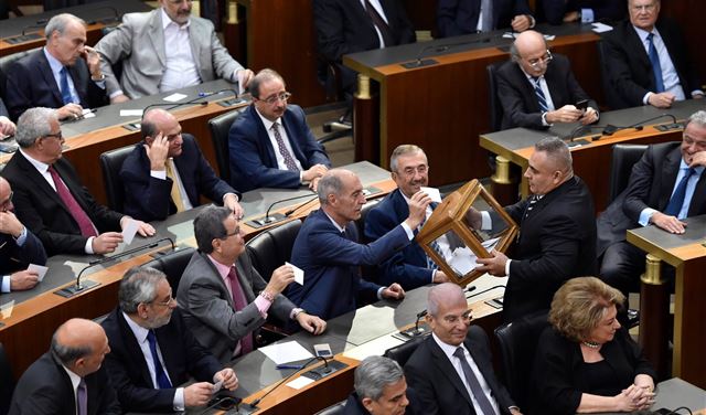 وفيما بدا واضحاً ان كتلة «الكتائب» (5 نواب) صوّتت في الدورتين بورقة كُتب عليها «ثورة الأرز في خدمة لبنان»، برز في الدورة الأولى وضع ورقة كُتب عليها اسم عارضة الأزياء والمغنية ميريام كلينك المعروفة بجرأتها، الامر الذي أثار هرجاً ومرجاً مع مزاح وتهكّم، لا سيما بعدما اعلن الرئيس نبيه بري اعتبار الورقة التي حملت اسمها ملغاة.