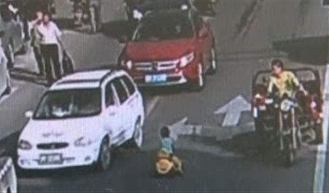 الطفل الذي يبلغ من العمر 3 سنوات بدا غير خائف على الإطلاق من السيارات القادمة نحوه.