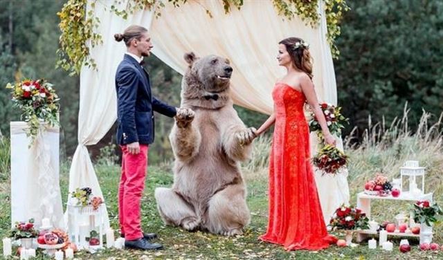 قرّر زوجان شابان من موسكو الاحتفال بزواجهما بطريقة مختلفة. استدعيا في عرسهما دباً عملاقاً ليتقاسم معهما الفرحة. ودعا كل من دينيس ونايلا، وعمرهما ثلاثون عاماً، الدب ستيفان جنباً إلى جنب مع الضيوف الآدميين دون تفرقة. ليس هذا فقط، بل لعب ستيفان دور الموظف المدني وكان حكماً أثناء تبادل العروسين لعهود الزواج.