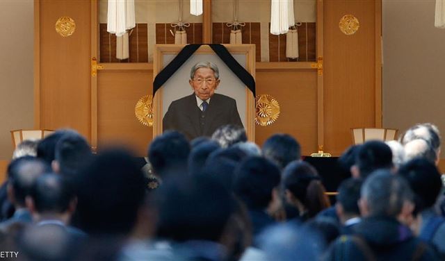 وتقدم كاهن من ديانة الشنتو في ملابسه البيضاء العربة التي حملت كفن الأمير في مقبرة توشيماجاوكا في طوكيو على وقع موسيقى الناي.