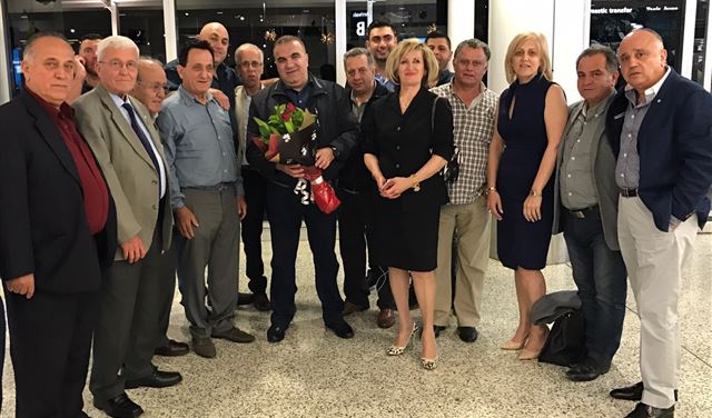 وكان في استقباله في المطار رئيس قسم سيدني الكتائبي بيتر مارون وأعضاء القسم ومناصرون.