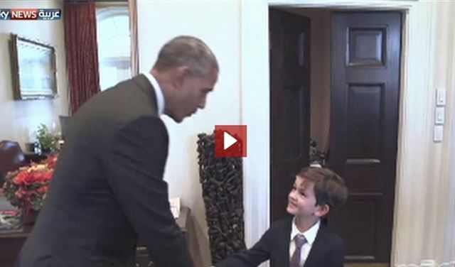 التقى الرئيس الأميركي باراك أوباما، في البيت الأبيض، الطفل أليكس الذي عرض استضافة الطفل السوري عمران دقنيش الذي نجا من قصف في مدينة حلب السورية.