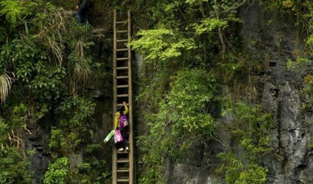 في كولومبيا أيضاً، يسلك الأطفال طرقات خطرة جداً، بينها في بلدة تقع على ضفة نهر ريو نيغرو، حيث يعبر الأطفال النهر من ضفة إلى أخرى، عبر حبل موصول فوق المياه.