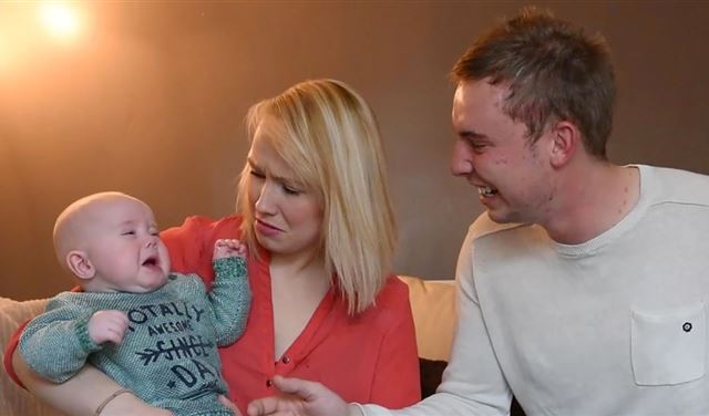 وكان ميتش سيمونز (24 عاماً) يراقب تعابير وجه طفله ماثيو في وقت سابق من هذا الشهر، عندما انفجر بالضحك، لكن ردة فعل الطفل كانت غير متوقعة، حيث راح يصرخ ويجهش بالبكاء بحسب صحيفة ميرور البريطانية.