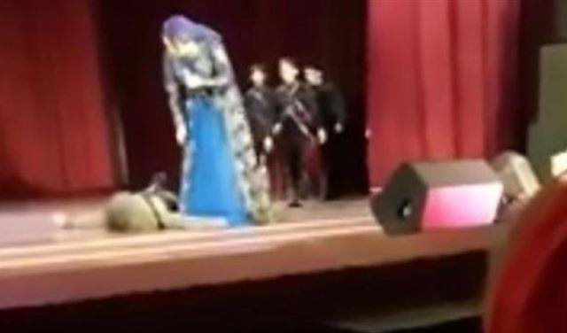 وأظهر الفيديو، الذي تم التقاطه عن طريق هاتف أحد المتفرجين، الراقص خوزاينوف الذي يبلغ من العمر 48 عاماً، وهو يسقط مرتطماً بأرض المسرح، بينما كان يؤدي فاصلاً تمثيلياً راقصاً، بمناسبة "يوم الأم" أمام المغنية ليزا أخماتوفا، ببلدة أوروس-مارتان بالشيشان، بحسب ما ورد في صحيفة "ميرور" البريطانية.