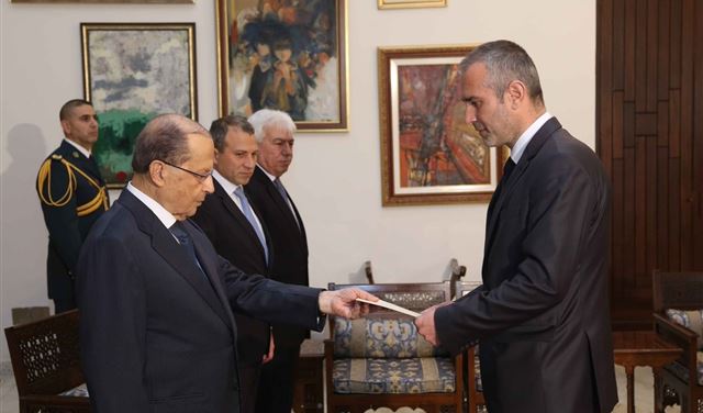 وحضر تقديم اوراق الاعتماد وزير الخارجية والمغتربين جبران باسيل، والامين العام لوزارة الخارجية السفير وفيق رحيمي، والمدير العام للمراسم في رئاسة الجمهورية لحود لحود، ومديرة المراسم في وزارة الخارجية السفيرة ميرا ضاهر فيوليدس.
