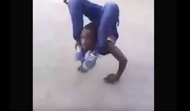 وفي مقطع الفيديو الذي تناقله مستخدمو فيس بوك، يظهر الفتى وهو يؤدي حركات لا تصدق وسط الشارع، حيث راح يتشقلب ويسير على يديه وجسمه مقلوب للخلف، بل وأدى تمرين الضغط وهو يحمل كامل وزن جسمه فوق يديه.