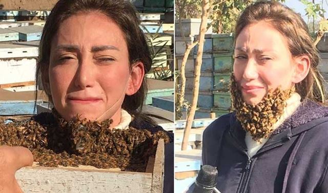 وظهرت سعيد، خلال احدى فقرات البرنامج، والنحل يغطي مناطق متفرقة من وجهها بأكمله.