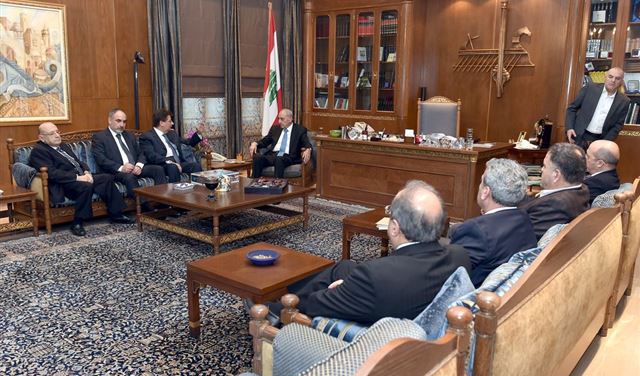 استقبل بري بعد الظهر وفد نواب "تكتل التغيير والإصلاح" الذي ضم النواب: ابراهيم كنعان، الآن عون، زياد اسود، نعمة الله ابي انصر، وغسان مخيبر في حضور النائبين علي بزي وعلي فياض. وتناول الحديث الجهود المبذولة لإقرار قانون جديد للإنتخابات.