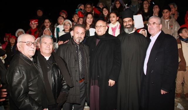 وانتقل الحضور الى باحة الكنيسة حيث اضاء المطران درويش والحضور زينة الميلاد وسط انشاد تراتيل واغاني الميلاد من قبل اطفال الرعية.
