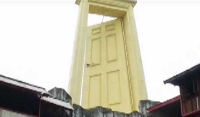 تداول مستخدمو مواقع التواصل الاجتماعي، مقطع فيديو غريب، لباب تم تثبيته على ارتفاع 8 أمتار، فوق مبنى في مدينة تشونغتشينغ الصينية.