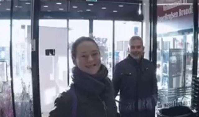 ويظهر الفيديو وقوف المتسوقين أمام مركز تجاري، منتظرين فتح الأبواب، التي ترفض الفتح إلا عند الابتسامة، الأمر الذي يترك المتسوق ضاحكا بشدة.
