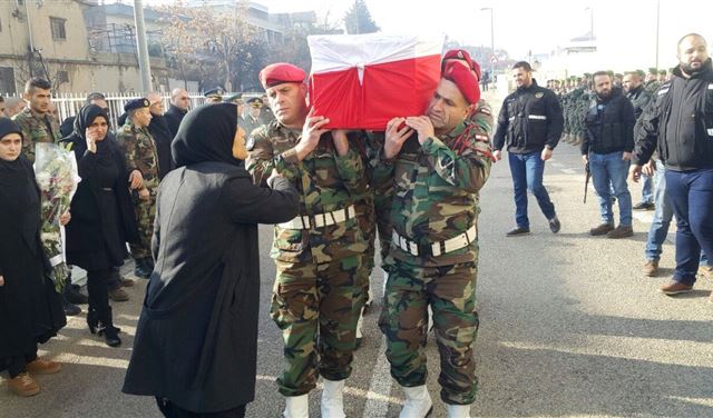 تسلمت عائلة الشهيد الرقيب علي القاق جثمان ابنها في مستشفى الهراوي في زحلة.