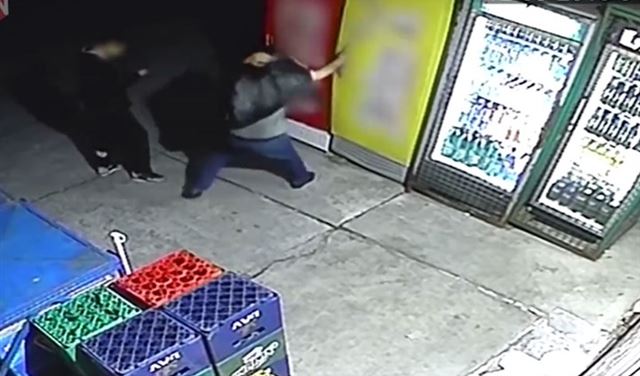 ويظهر في الفيديو نقلا عن كاميرا مراقبة، لصان يحاولان سرقة بعض المشروبات من ثلاجة البيرة في وقت متأخر من الليل. ولكن الثلاجة انقلبت على أحد السارقين عندما حاول أن يفتح الباب بقوة.