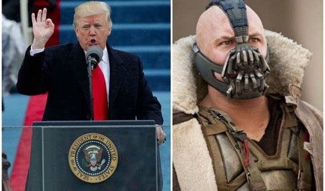 تداول رواد مواقع التواصل الاجتماعي جزءا من خطاب الرئيس الأمريكي الجديد، دونالد ترامب، خلال تنصيبه يظهر فيه استعانته بجمل جاءت على لسان الشخصية الشريرة الرئيسية في فيلم "The Dark Knight Rises".