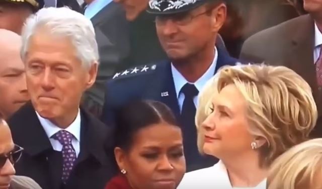 وأظهر مقطع الفيديو بيل كلينتون، وهو يلقي نظرات خبيثة تجاه "إيفانكا"، ولكن الأبرز كان رد فعل زوجته والمرشحة الديمقراطية السابقة للرئاسة الأميركية "هيلاري كلينتون" تجاهه.