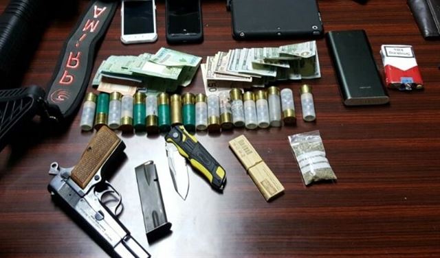 وضبطت بحوزته بندقية نوع بومب اكشن مع حوالي 150 طلقة عائدة لها داخل "جعبة"، مسدس حربي مع ممشط بداخله 6 طلقات صالحة للاستعمال، سكين، هاتفين خلويين، كيس بداخله مادة السيلفيا وورق لف إضافة الى سترة عسكرية ومبلغ من المال.