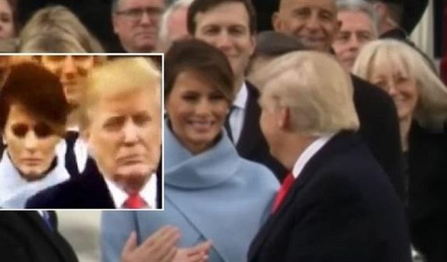 اللقطة هي من التغطية التلفزيونية لحفل تنصيبه بعد أدائه اليمين الدستورية، وفيها تبدو زوجته خلفه بفستانها الأزرق، وخلفها ظهرت ابنته الكبرى إيفانكا، ولما أدار وجهه إلى الخلف، ظهرت على شفتيها ابتسامة امتدت حتى إلى أطراف أذنيها، إلا أنها أنهتها سريعاً حين أدار ظهره، وبدا وجهها قاتماً متجهّماً، ونراها في الفيديو تطبق فمها بسرعة، وتسدد إليه طعنة بعينين غاضبتين من أمر ما، وهذه هي الإشارة إلى أن العلاقة بين الاثنين ليست كما تبدو في الظاهر، بل فيها كواليس وكوابيس.