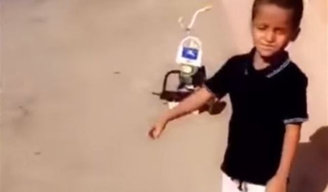 مقطع ساخر، حيث كان يلعب مع أقرانه الأطفال في فناء المنزل.