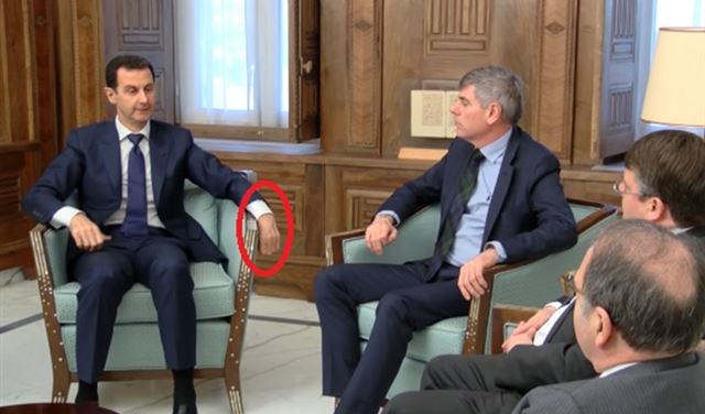 حاول إعلام النظام الرسمي تكذيب الشائعات جميعها التي تحدثت عن إصابة الرئيس بشار الأسد بجلطة دماغية، وذلك عبر بث فيديو سريع يوثق استقبال الأسد لوفد بلجيكي.