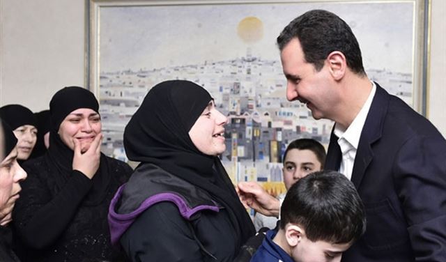 ظهر الرئيس السوري بشار الأسد، الخميس، في استقبال النساء المخطوفات، وأطفالهن، الذين خرجوا بصفقة تبادل قبل أيام مع فصائل المعارضة.