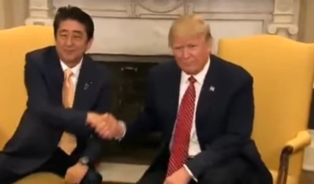 شهد اللقاء الذي جمع الرئيس الأميركي دونالد ترامب ورئيس الوزراء الياباني شينزو آبي الجمعة 10 شباط 2017 أمام البيت الأبيض واقعة طريفة، ففي مصافحة بروتوكولية اعتبرت الأطول من نوعها والأكثر طرافة، قال رئيس الوزراء الياباني، شينزو آبي، للرئيس الأميركي، دونالد ترمب، "أرجوك انظر إلي".