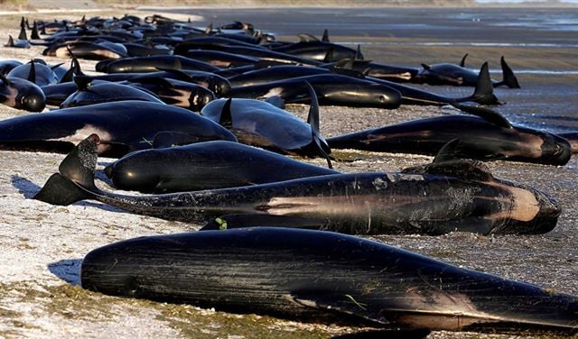 قامت السلطات النيوزيلندية بالتخلص من جثث 300 حوت، اليوم الاثنين، لتجنب انفجار تلك الجيف لدى تحللها على شاطئ الخليج الذهبي الذي جنح إليه أكثر من 600 حوت.