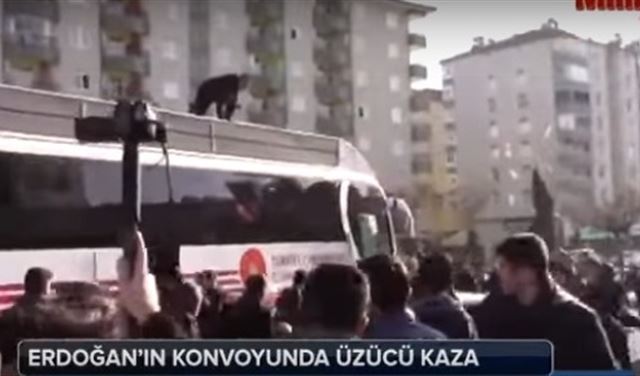وذكرت وسائل الإعلام أن الحافلة التي كانت تقل الرئيس التركي دهست أحد موظفي الحراسة الرئاسية أثناء مغادرتها بلدية محافظة إلازغ.
