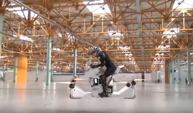 هذه اللقطات المبهرة تعرض أول "هوفربايك" (دراجة نارية طائرة) hoverbike- يتحكم فيها قائدها بشكل تام - في العالم، حيث أعلنت شركة "هوفر سيرف"، الشركة المصنعة لهذه التقنية المذهلة، أنها قامت بإنتاج طائرة ذات مقعد واحد قادرة على رفع شخص في السماء مع السيطرة الكاملة له على جميع تحركاتها، وفقاً لما نشرته صحيفة "ديلي ميل" البريطانية.